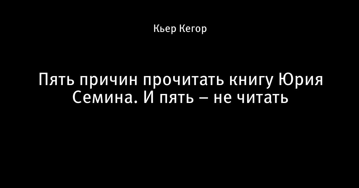 Пять причин прочитать книгу Юрия Семина. И пять – не читать