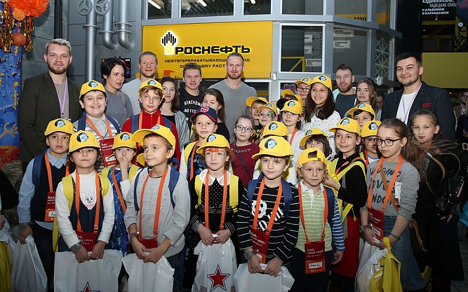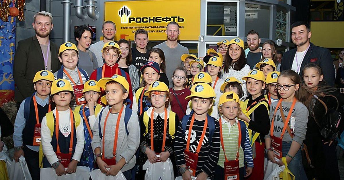 НК «Роснефть» и детский образовательный парк «Кидзания» провели экскурсию для детей из реабилитационных центров и детских домов. Экскурсоводами по «городу профессий» для них выступили игроки ЦСКА: олимпийские чемпионы Иван Телегин, Кирилл Капризов, Никита Нестеров и Сергей Андронов.