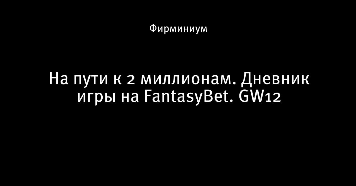 На пути к 2 миллионам. Дневник игры на FantasyBet. GW12