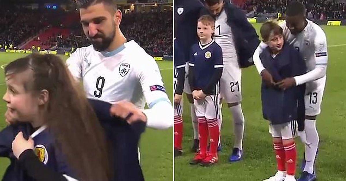 Перед матчем с Шотландией в Лиге наций израильские футболисты заметили, что дети, которые вывели их на поле, дрожат от холодного ветра.