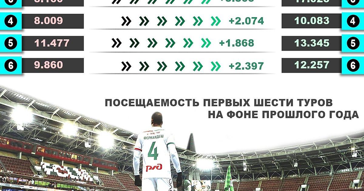 Сходу предлагаю посмотреть на заполняемость "РЖД Арены" в ранге чемпиона России. Для первой команды РПЛ прошлого сезона цифры совсем не впечатляющие.