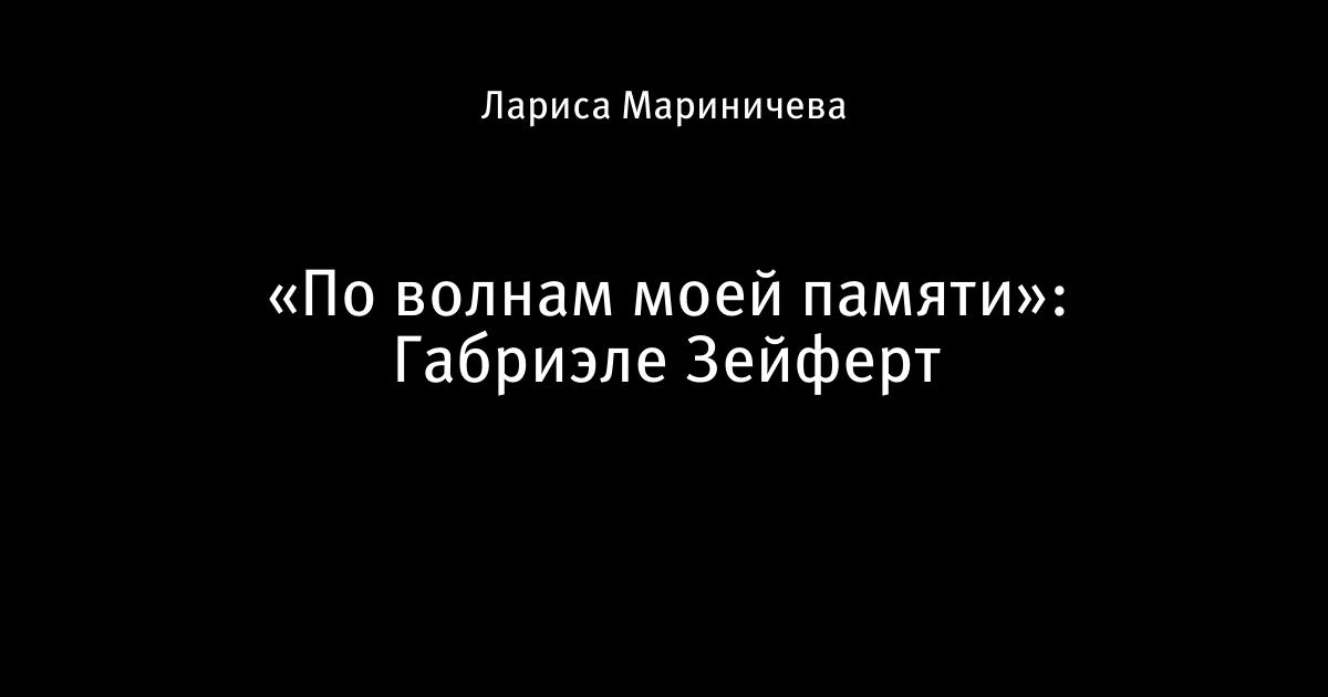 «По волнам моей памяти»: Габриэле Зейферт