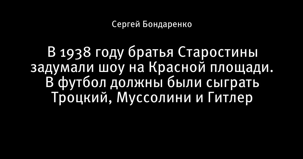 В 1938 году братья Старостины задумали шоу на Красной площади. В футбол должны были сыграть Троцкий, Муссолини и Гитлер