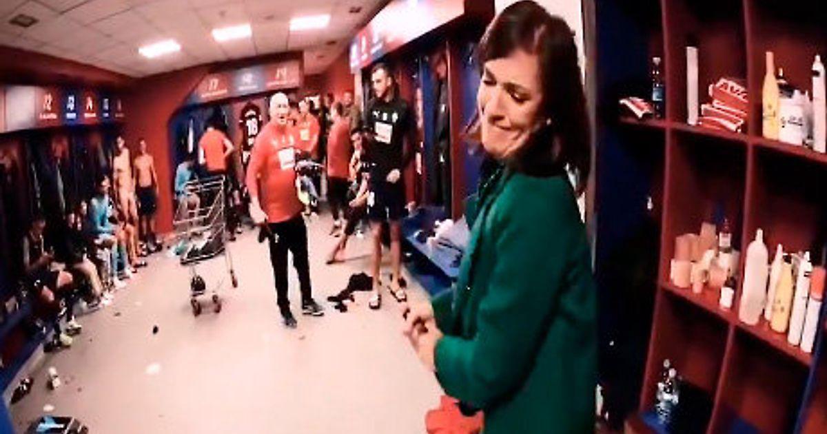 После матча она пришла в раздевалку команды, открыла шампанское и праздновала с парнями. Душевно: