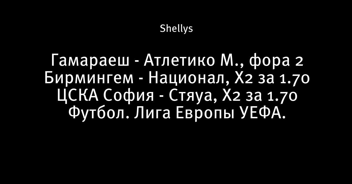 Гамараеш - Атлетико М., фора 2 Бирмингем - Национал, Х2 за 1.70 ЦСКА София - Стяуа, Х2 за 1.70 Футбол. Лига Европы УЕФА.