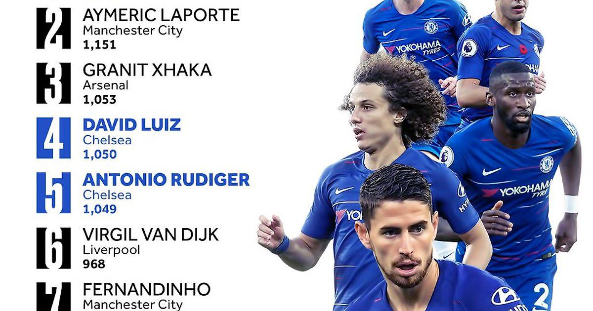 Футболисты АПЛ с наибольшим количеством совершенных передач в сезоне 2018/19