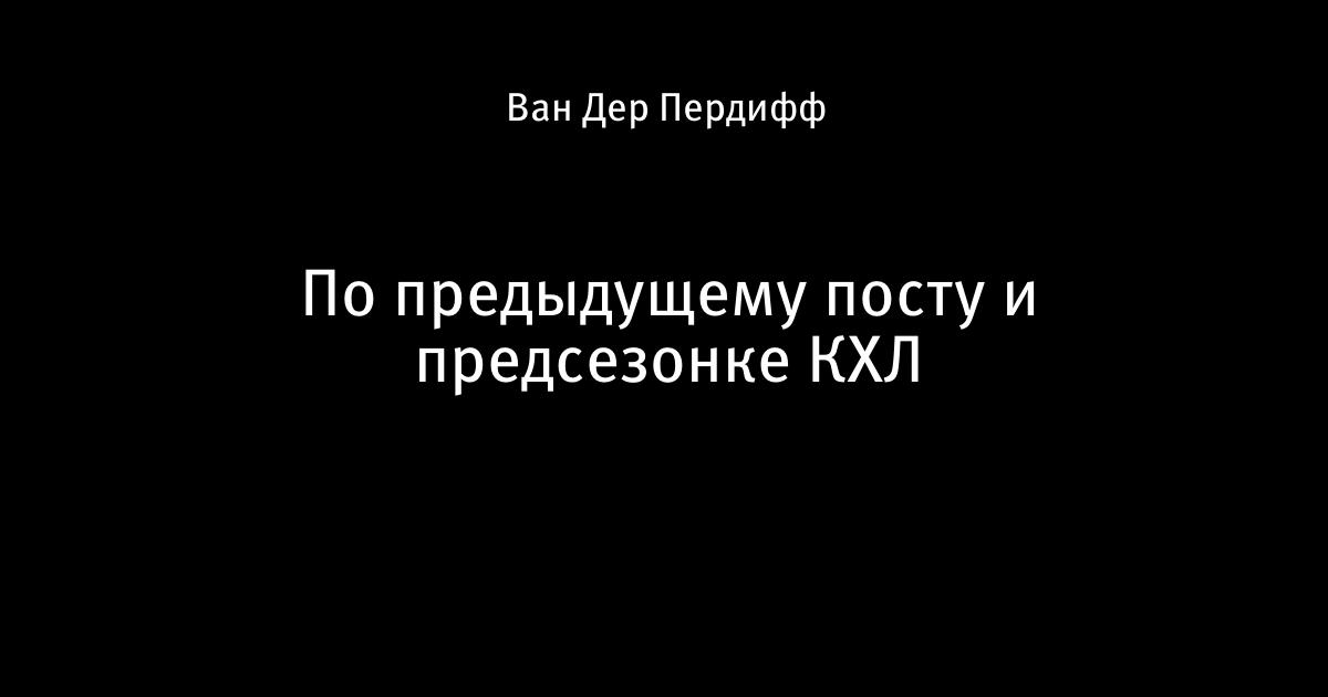 Во-первых, всем спасибо за ответы на вопросы в предыдущем посте. Обращает на себя внимание ин(е)терес публики к тренерской работе Густаффсона и Баркова. Вот честно говоря, в первого почему-то верится не очень. Может, из-за последнего сезона, не знаю. Ну и также занимателен тот факт, что помимо отъезда Ягра (что предсказуемее некуда) читатели отметили отъезд Емелина.