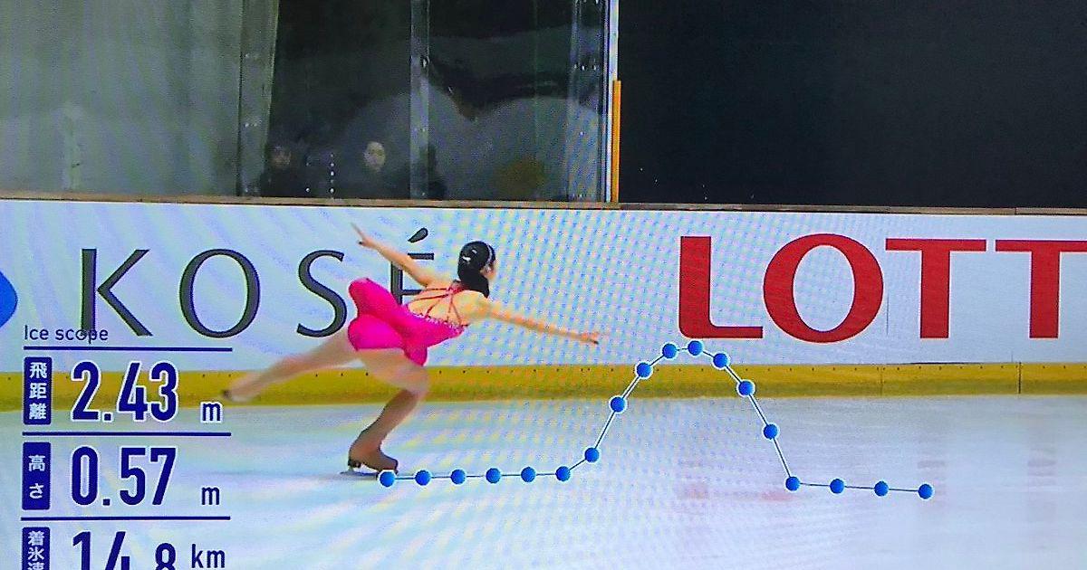 А первые два места заняли представительницы старшей школы Чюкиё (Нагоя) Юхана Йокои и Нана Араки. Юхана никак не "вылечит" свой флутц (а, как видим, даже домашние техспециалисты на такие вещи закрывать глаза не намерены), однако в произвольной программе прыгнула каскад 3+3+2 в бонусной зоне, единственная среди всех спортсменок. Из её прыжков под взор всевидящего ока IceScope попал сольный двойной аксель. Нана, в свою очередь, в произвольной программе выкатала бОльшую базу, чем её однокашница, да и строгая техническая триада не нашла, к чему придраться, не считая неясного ребра на флипе. Но - падение, при чем с каскада, плюс отставание в компонентной части, которое было ощутимым и в короткой программе. В итоге Юхана Йокои стала новой чемпионкой Японии среди юниорок, а Нана Араки - вице-чемпионкой.