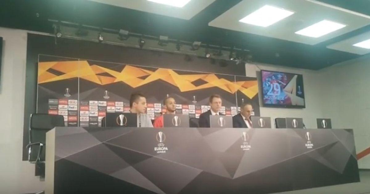 На стадионе «Открытие-Арена», накануне матча Лиги Европы против венского «Рапида», состоялась пресс-конференция главного тренера «Спартака» Олега Кононова и полузащитника красно-белых Софьяна Ханни.