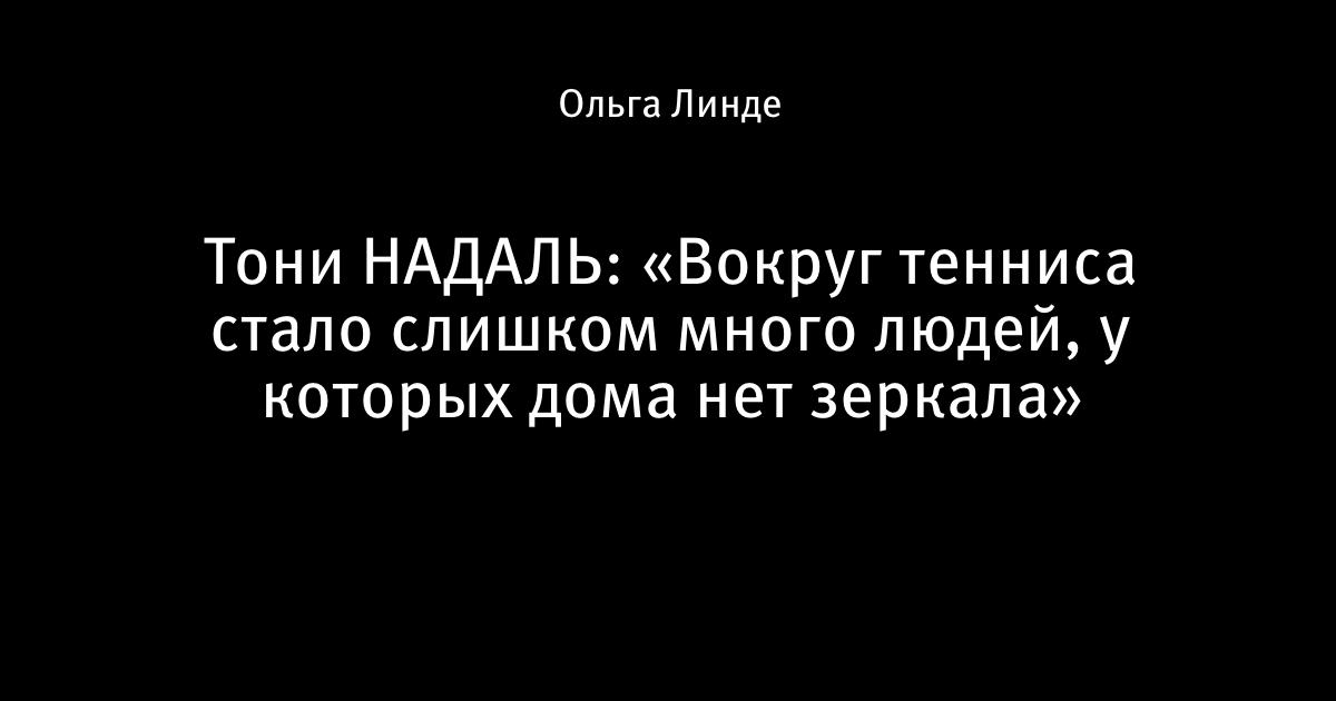 Тони НАДАЛЬ: «Вокруг тенниса стало слишком много людей, у которых дома нет зеркала»