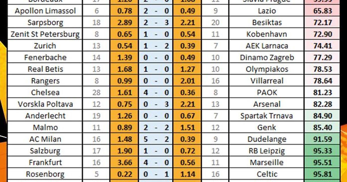 Как видим, самым несправедливым (с точки зрения модели xG) результатом стало домашнее поражение "Астаны" от киевского "Динамо" со счетом 0-1.