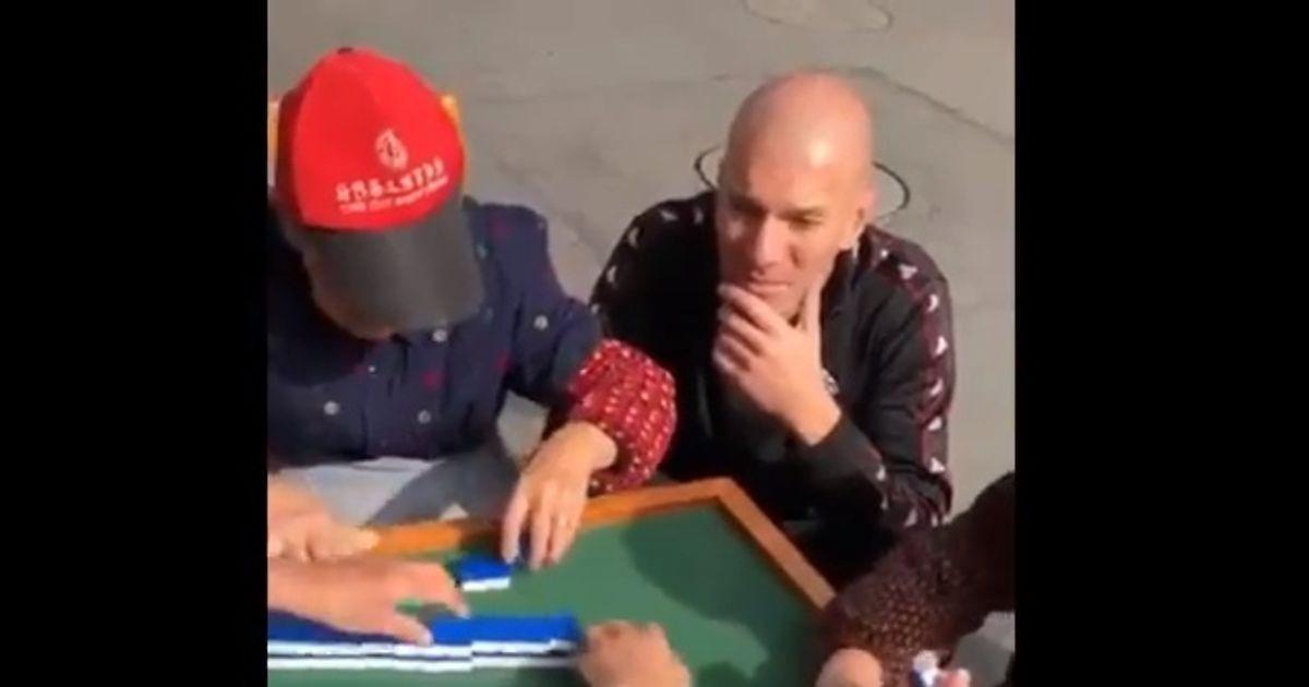 Бывший тренер мадридского "Реала" Зинедин Зидан понаблюдал за игрой в маджонг в исполнении пожилых китаянок. Видео, снятое в Китае, тренер выложил в инстаграм. В ходе игры Зидан попытался поговорить с бабушками на французском и английском, но они его не поняли.