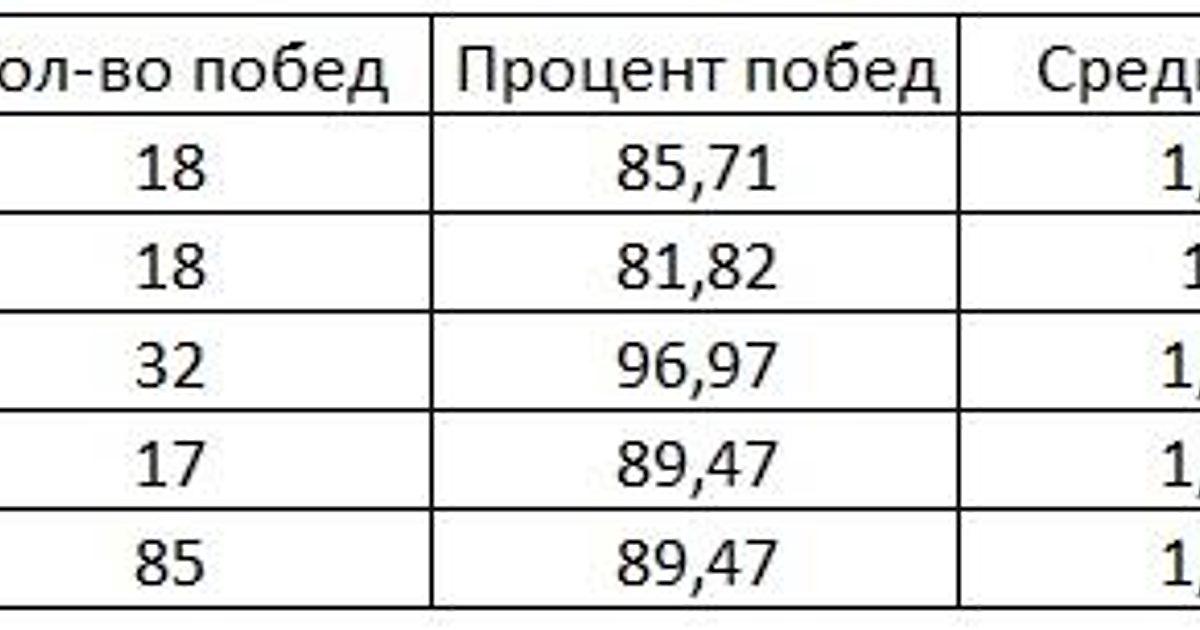 Против лидеров. 21 игра, 18 побед. Средний коэффициент 1,75. Прибыль 10090 рублей.