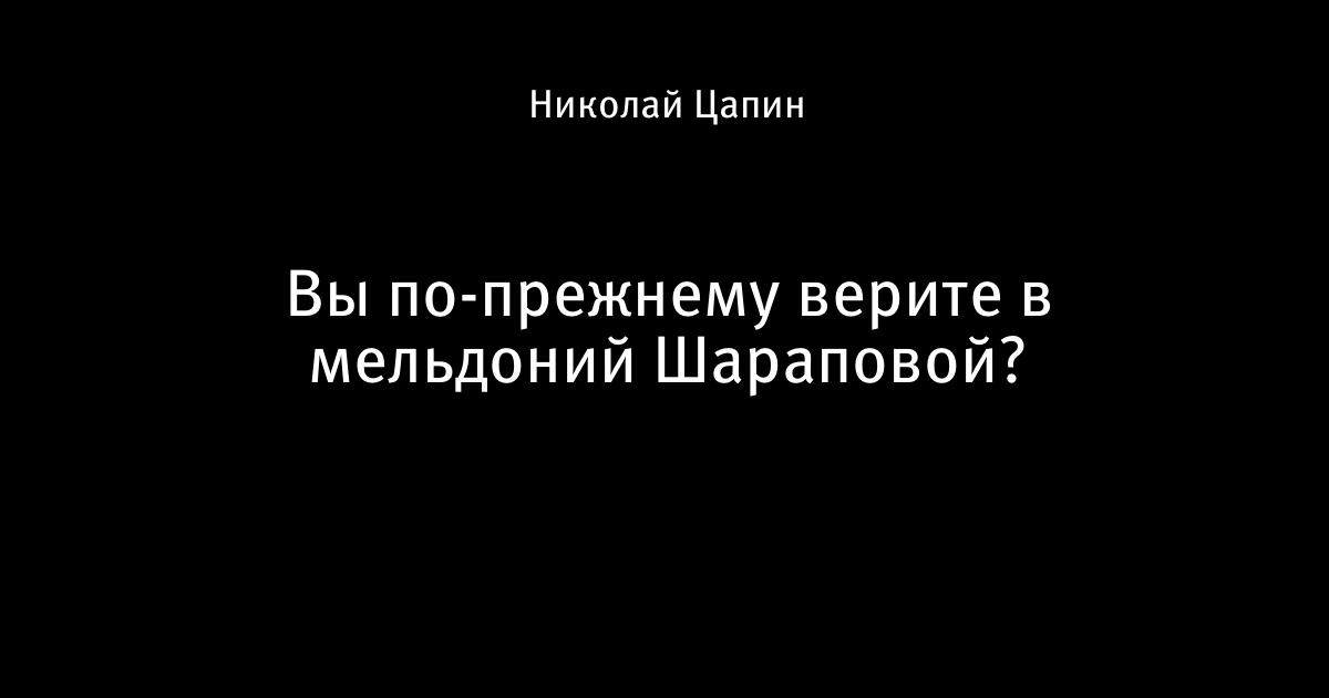 Задам простой и конкретный вопрос... Верите ли вы, что Шарапова была дисквалифицирована из-за мельдония? Мой ответ - НЕТ. Я предполагаю (не утверждаю), что мельдонием прикрыто что-то другое. Поскольку у меня нет доказательств, я не могу и не хочу никого ни в чем обвинять. Я просто высказываю свое мнение, высказываю свои сомнения...