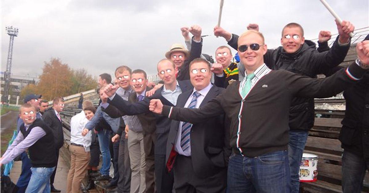 На сборе перед погрузкой в электричку фанаты "Титана" были приятно шокированы непривычным внешним видом друг друга. В дорогу вместо пива было закуплено шампанское, а общение в пути велось исключительно с использованием выражений "Будьте любезны!", "Не соблаговолите ли Вы?", "Окажите услугу!" и т.д.