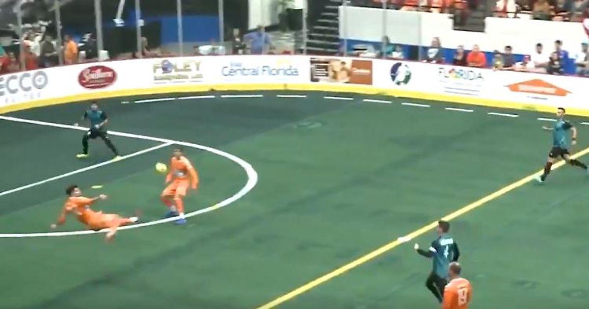 В матче MASL (Главной лиги по футболу на арене) игроки «Флорида Тропикс» забили классный гол ножницами. Зацените передачу и крик комментатора: