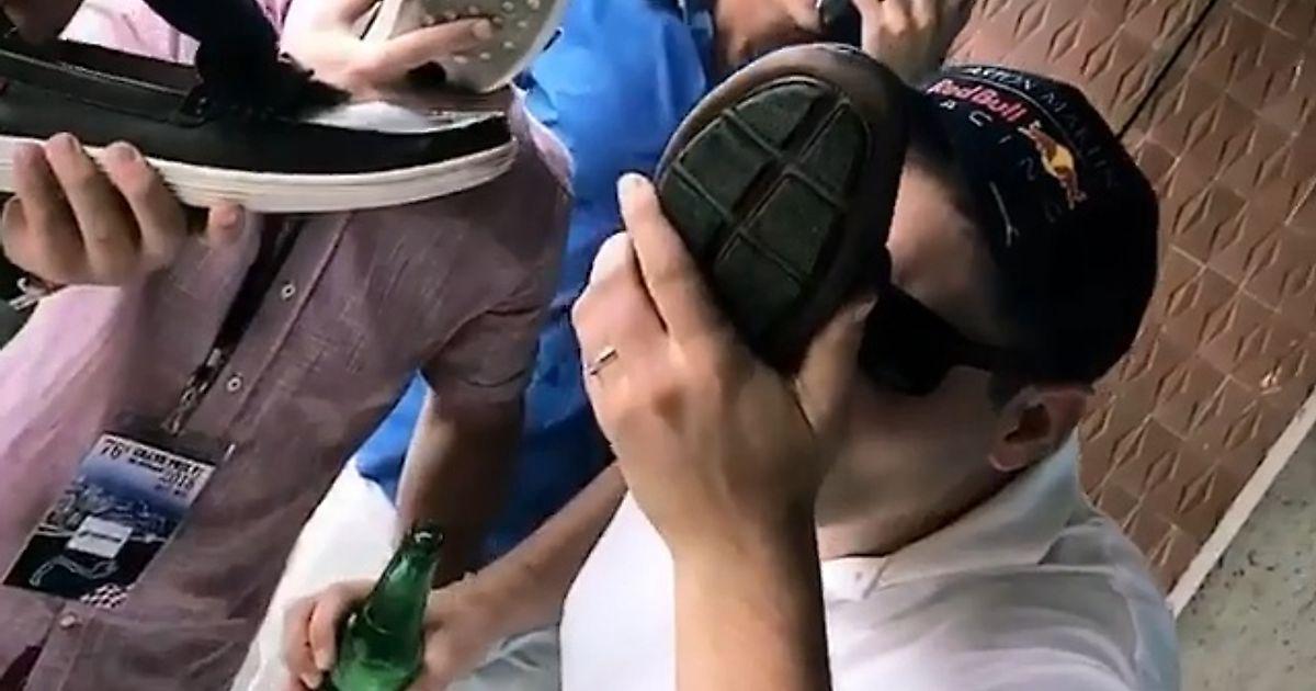 Официальный аккаунт «Ред Булл» в инстаграме опубликовал видео, посвященное уходу их гонщика Даниэля Риккардо в «Рено». В ролике смонтированы около 70 фанатов, потребляющих шампанское из собственной обуви.