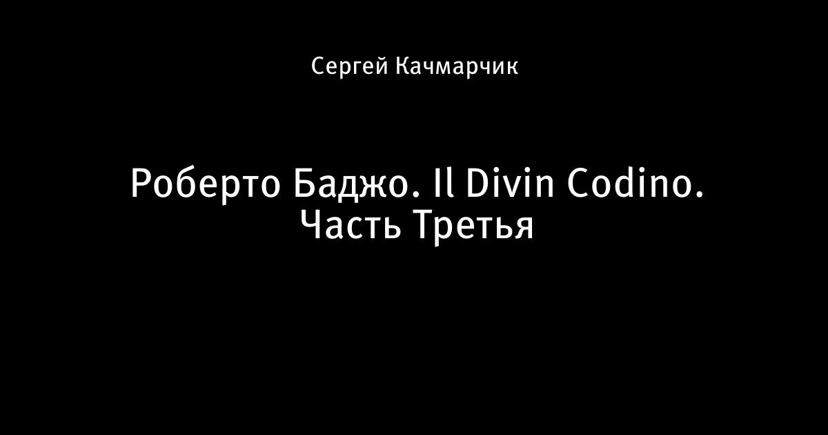Роберто Баджо. Il Divin Codino. Часть Третья