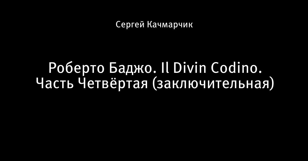 Роберто Баджо. Il Divin Codino. Часть Четвёртая (заключительная)