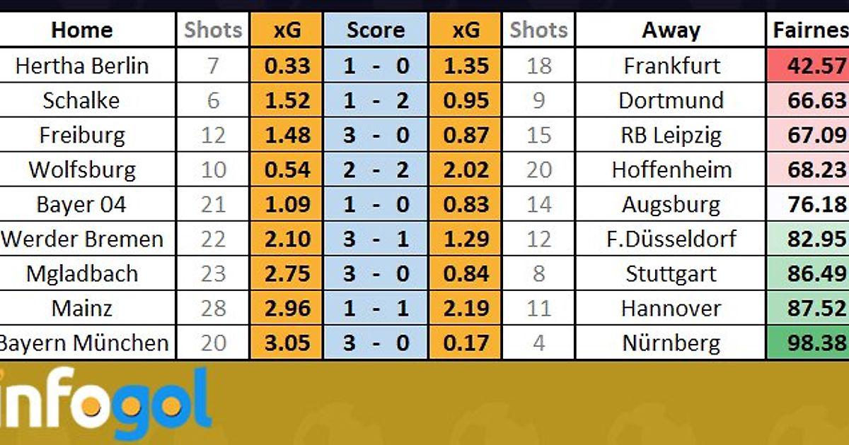 Оценка справедливости результатов 14-го тура Бундеслиги от Infogol