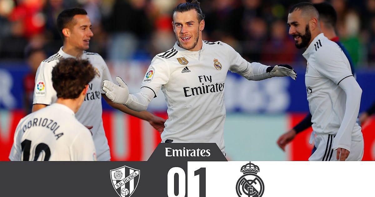 Мадрид обыграл Уэску в гостях со счетом 0-1. Единственный гол за Мадрид забил Бэйл, который прервал свою 10-матчевую серию без забитых голов в Ла Лиге.