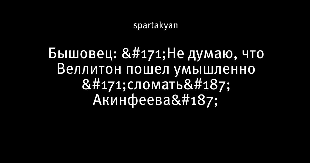 Бышовец: «Не думаю, что Веллитон пошел умышленно «сломать» Акинфеева»