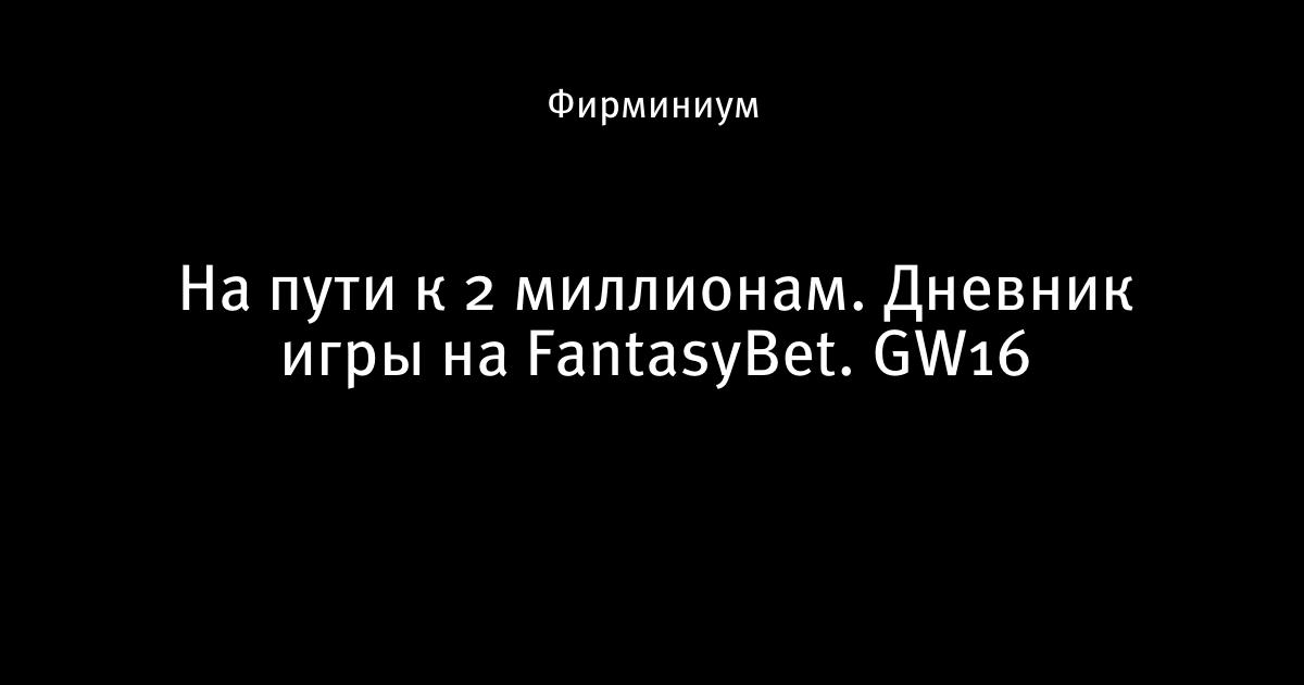На пути к 2 миллионам. Дневник игры на FantasyBet. GW16
