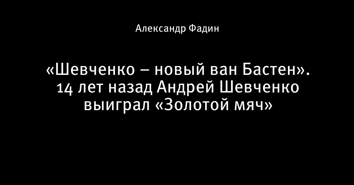 «Шевченко – новый ван Бастен». 14 лет назад Андрей Шевченко выиграл «Золотой мяч»
