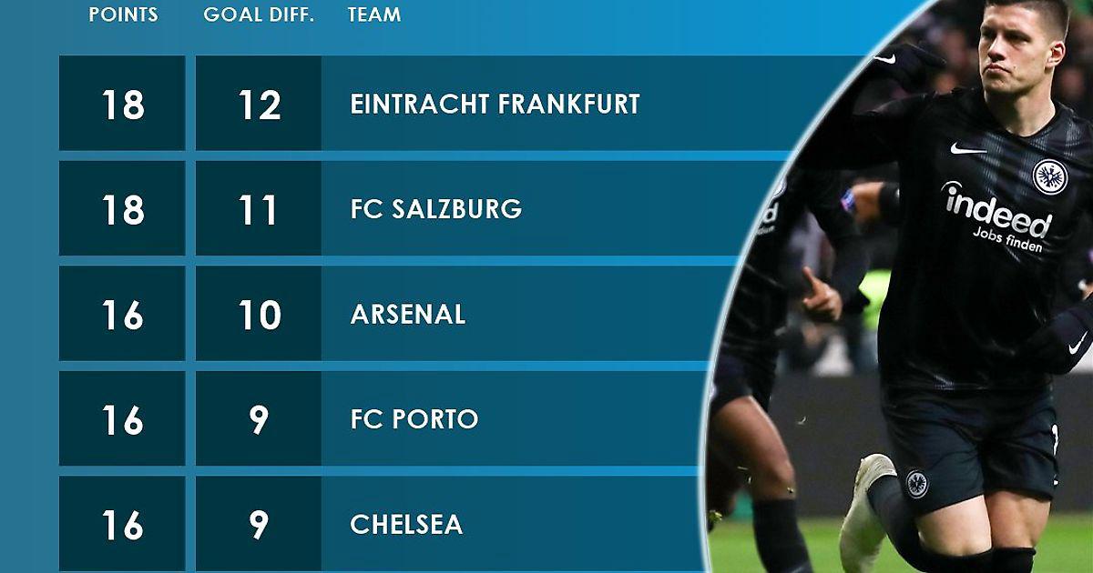 Лучшие команды группового этапа ЛЧ/ЛЕ 2018/19 по набранным очкам и разнице забитых/пропущенных мячей