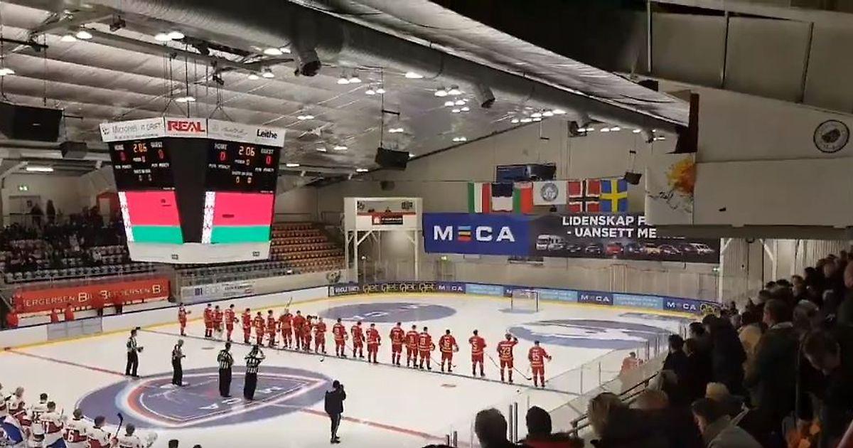 Перед матчем хозяев со сборной Беларуси традиционно включали гимны стран. Но что-то пошло явно не так. Вместо белорусского гимна заиграла легендарная композиция «Песняров» «Косил Ясь конюшину».