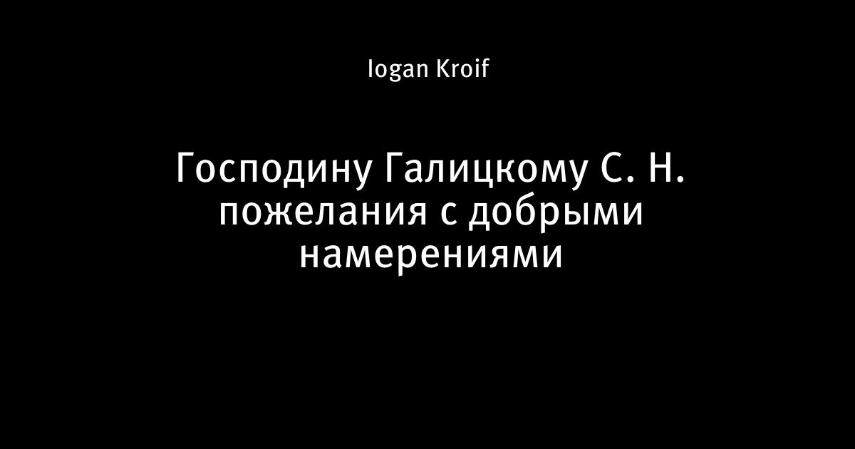 Господину Галицкому С. Н. пожелания с добрыми намерениями