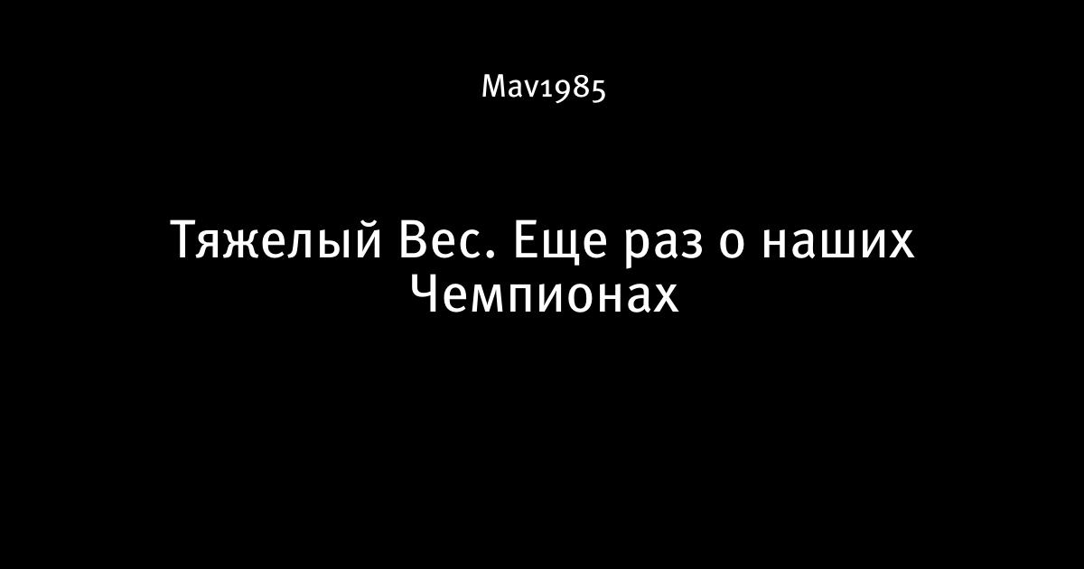 Тяжелый Вес. Еще раз о наших Чемпионах