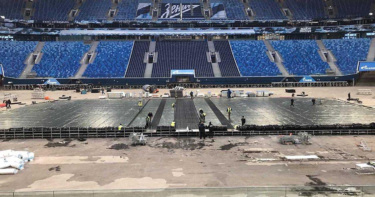 Теперь специально обученные люди начинают распыление краски на наше основание. Зачем спросите? Все просто... для того чтобы лёд был белый и красивый, а не серый.