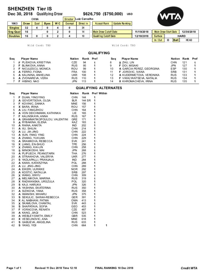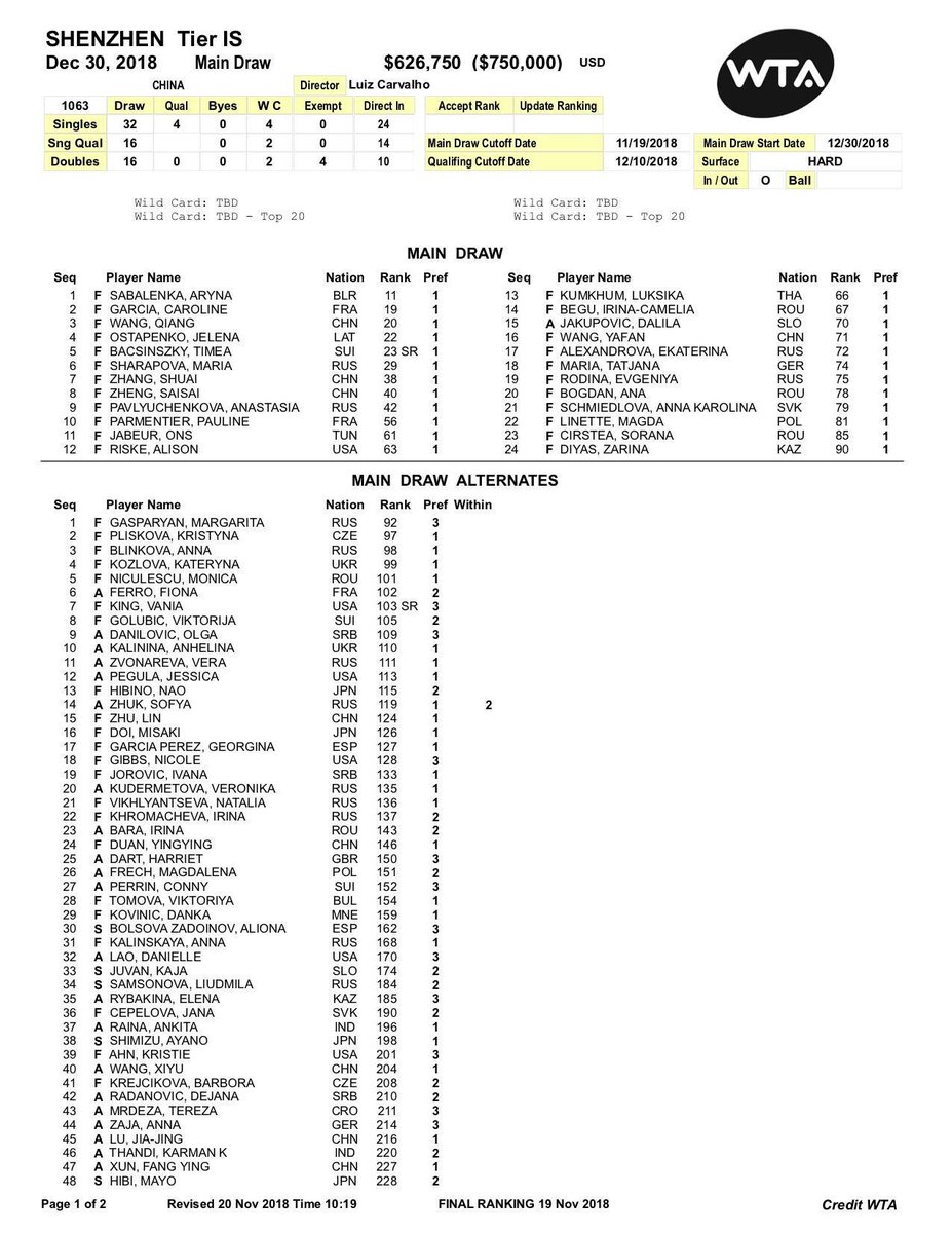 Жеребьевка (турнира Шеньчжень Оупен) состоится 30 декабря в 15:00 по местному времени (то есть уже в следующее Воскресенье в 10:00 утра по Москве).