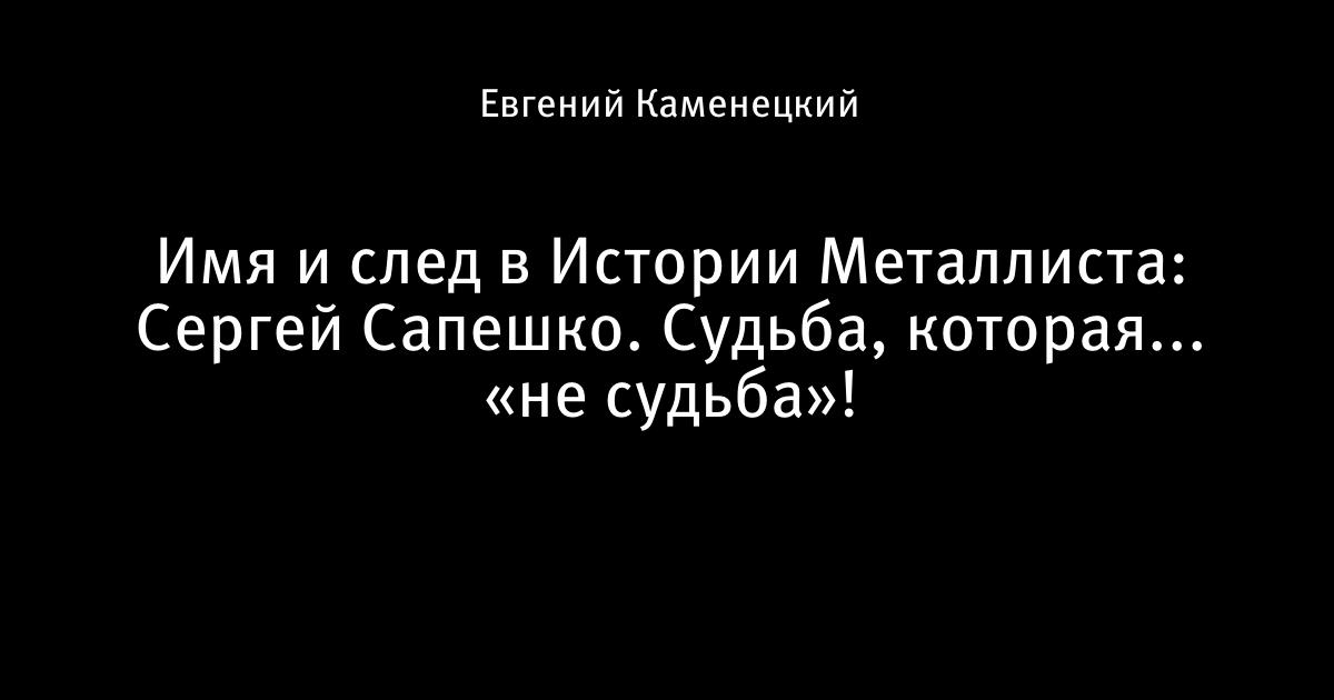 Имя и след в Истории Металлиста: Сергей Сапешко. Судьба, которая... «не судьба»!