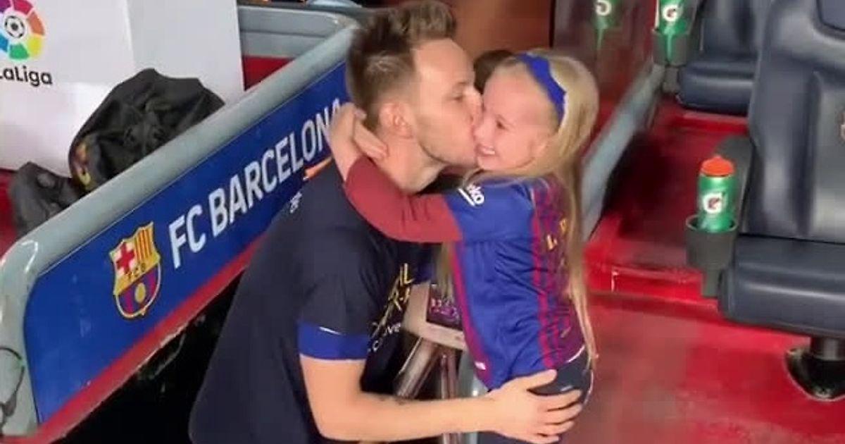 Полузащитник Барселоны Иван Ракитич обнимается и целует маленькую дочь, которая пришла на матч поддержать отца.