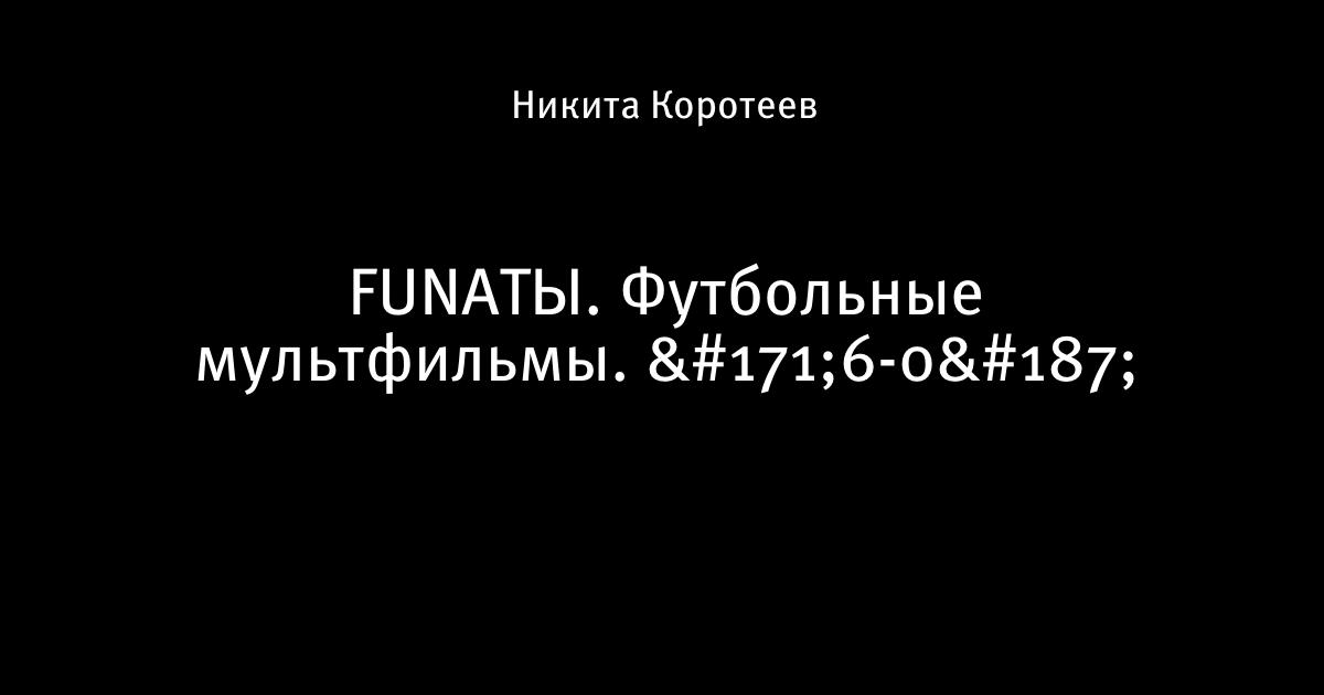 2 сентября 2011, 11:59 FUNATЫ. Футбольные мультфильмы. «6-0» Другие серии: Вторая Третья Четвертая Пятая Автор Никита Коротеев Этот пост опубликован в блоге на Трибуне Sports.ru. Присоединяйтесь к крупнейшему сообществу спортивных болельщиков! Другие посты блога Телевизор 3.0 болельщики видео