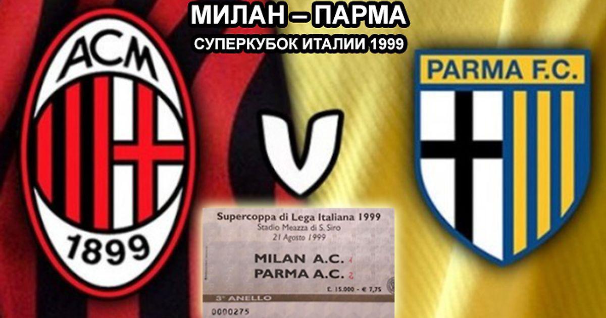 Итак, специально для вас поединок за итальянский Суперкубок 1999 года между командами «Милан» и «Парма»! Какие люди! Что не имя, то звезда! У «россонери»: Паоло Мальдини, Деметрио Альбертини, Оливер Бирхофф, нынешний президент Либерии Джордж Веа, только что перебравшийся из Киева Андрей Шевченко, наконец! А «Парма»? Если и послабее, то совсем чуть! В её составе Лилиан Тюрам, Фабио Каннаваро, Ариэль Ортега, Эрнан Креспо, а на воротах тогда ещё только подающий надежды, а ныне великий Джанлуиджи Буффон!