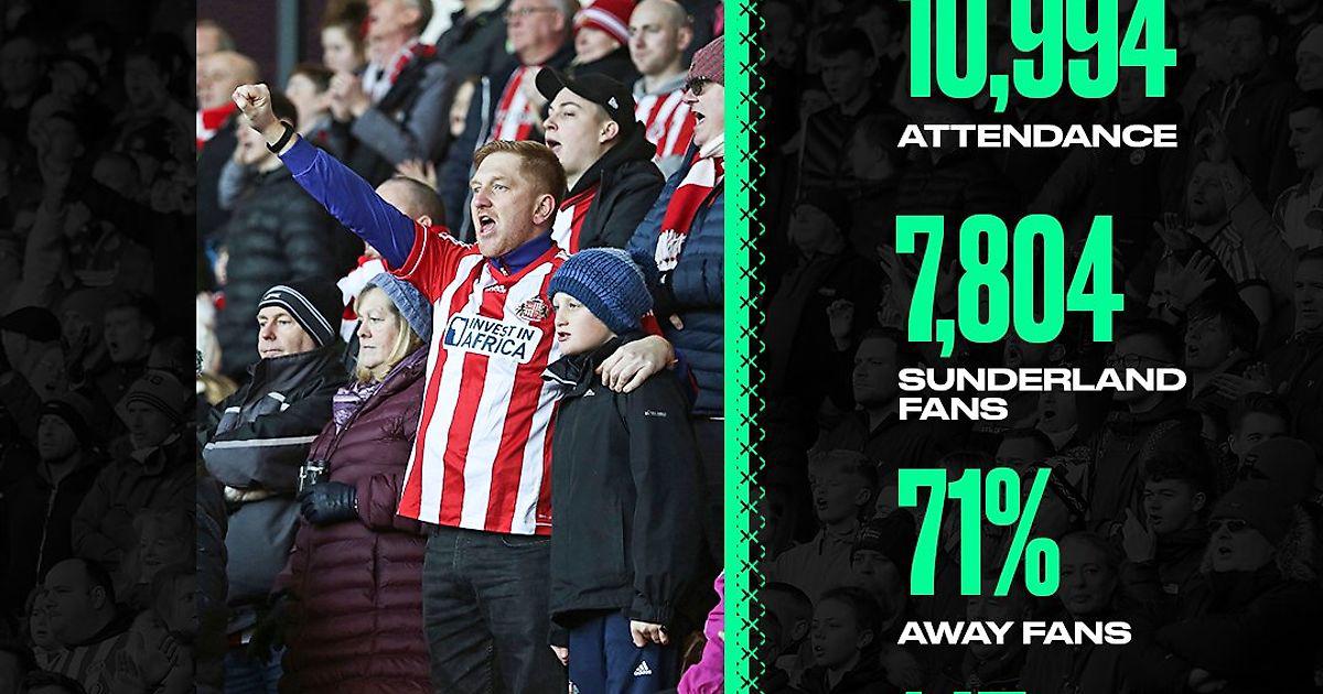 Из 10 994 болельщиков на этом матче, 7 804 были болельщиками "Сандерленда" (71%).