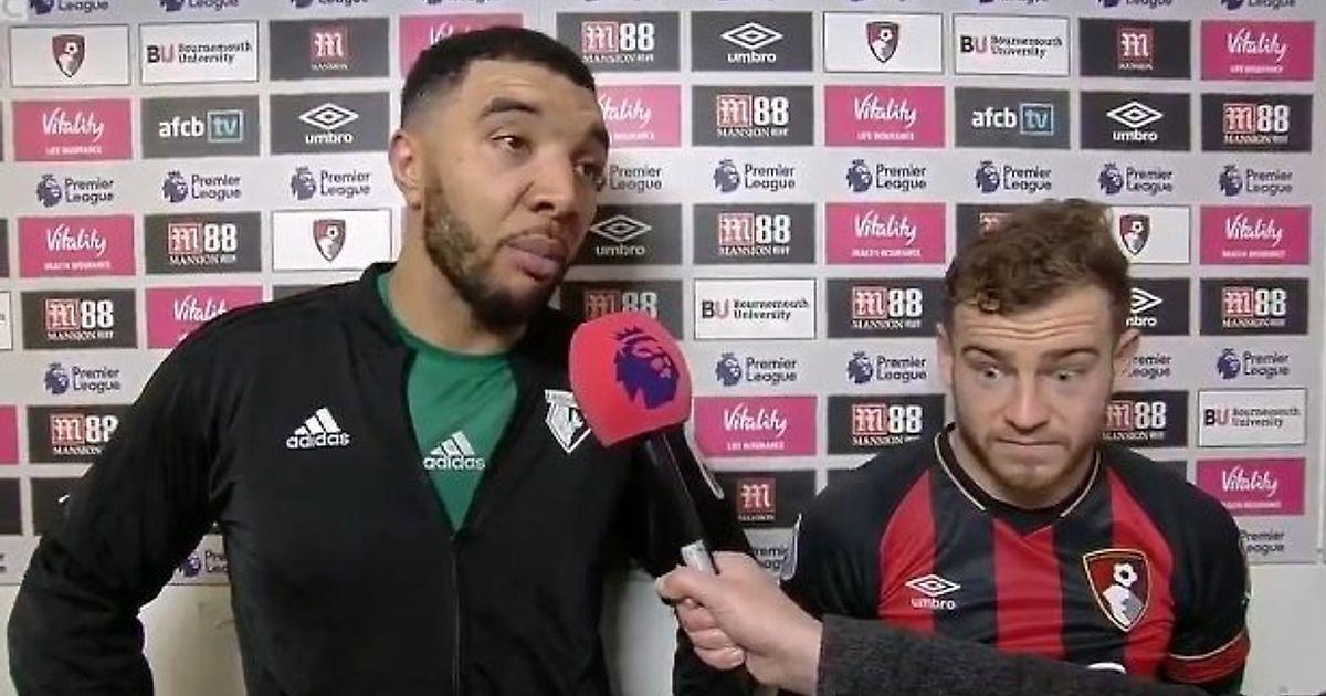 На послематчевое интервью позвали героев обеих команд – капитана «Уотфорда» Троя Дини и полузащитника Райана Фрэйзера из «Борнмута». Дини не скрывал то, что недоволен судьей Дэвидом Кутом: