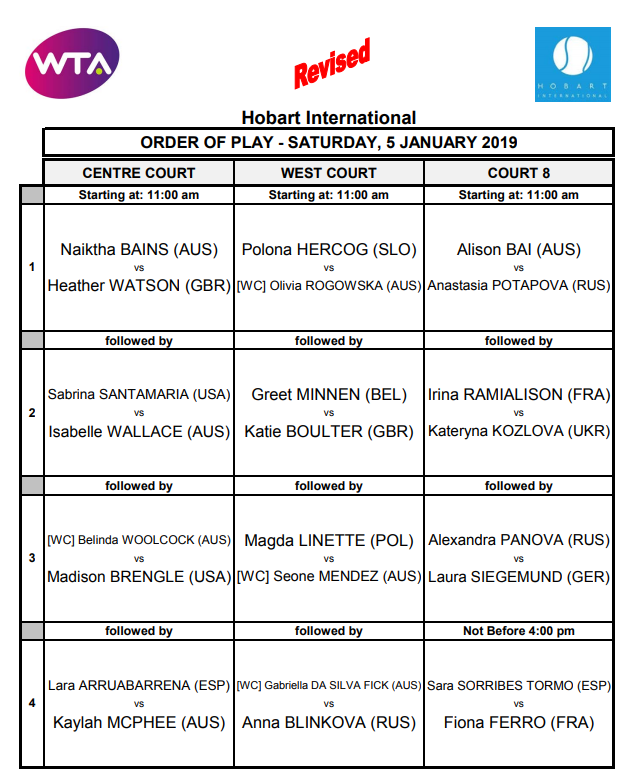 Хобарт. Расписание на 5 января