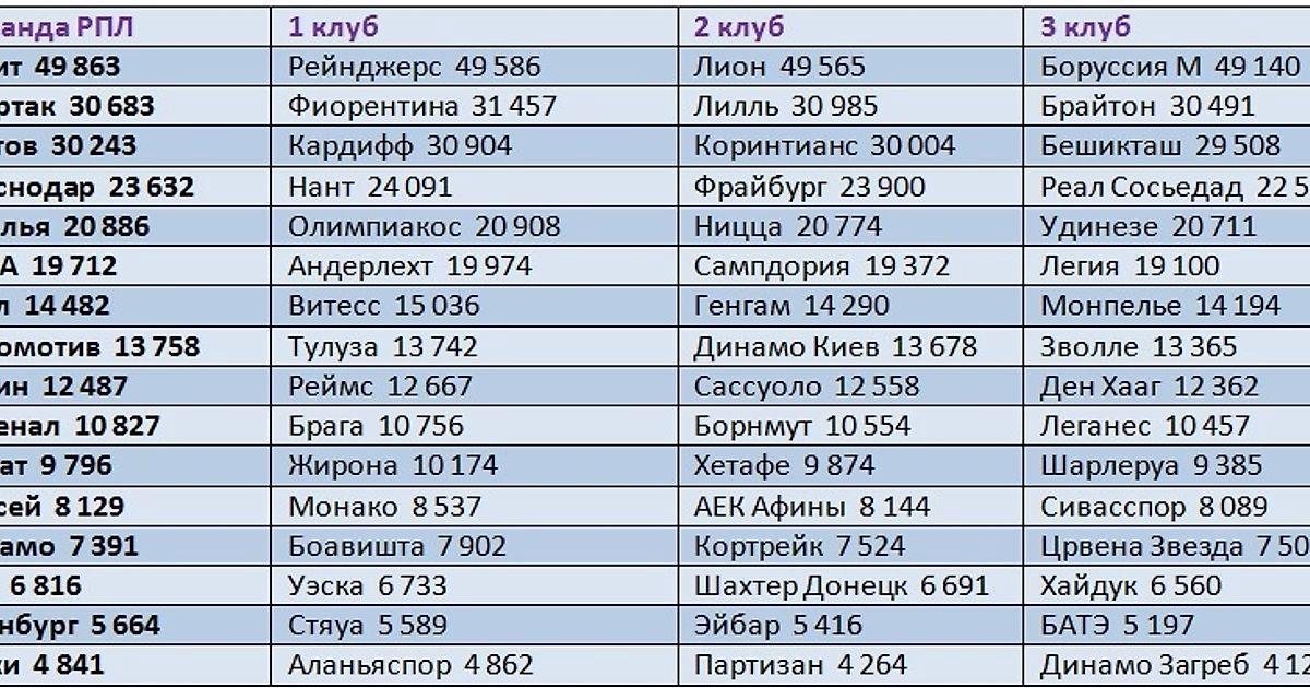 Сравнение посещаемости клубов РПЛ с иностранными клубами сезона 2018/2019 (высших лиг)