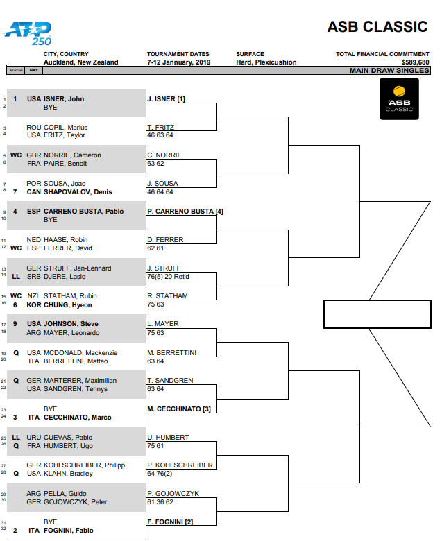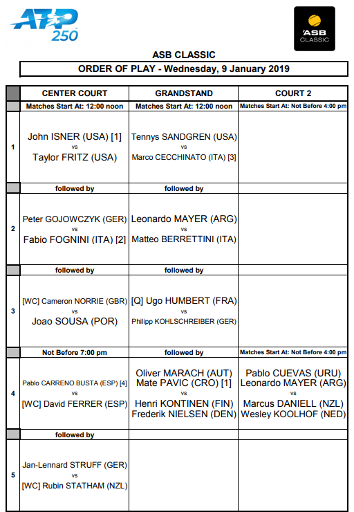 Окленд. Расписание на 9 января и обновленная Main Draw