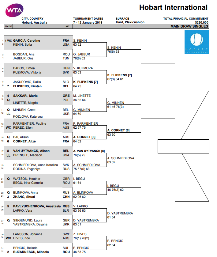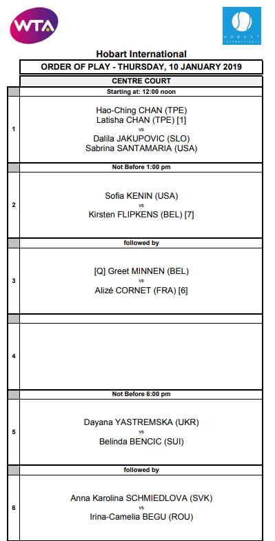 Хобарт. Расписание на 10 января и обновленная Main Draw