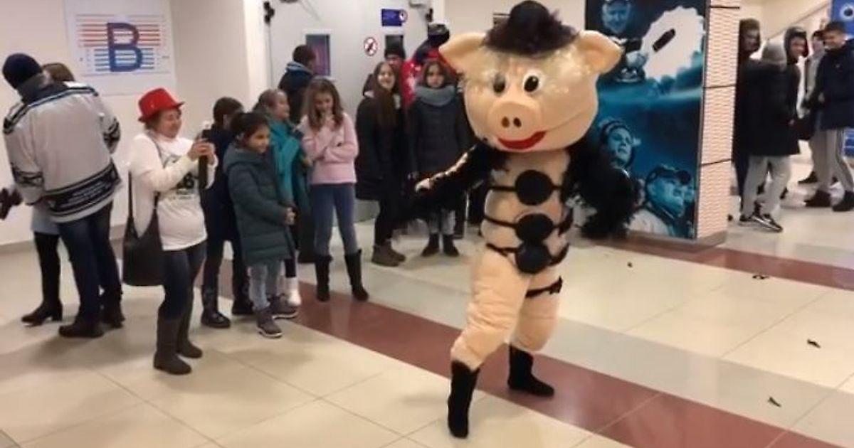 Свинья из «Ну, погоди!» в стрингах танцевала стриптиз на матче ВХЛ. Простите, что?