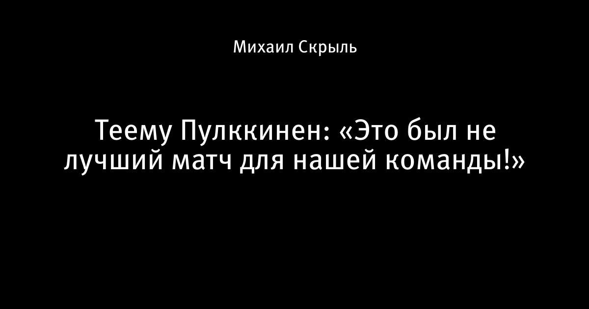 Теему Пулккинен: «Это был не лучший матч для нашей команды!»