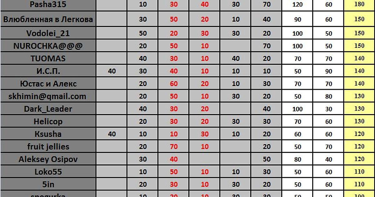 А теперь долгожданные итоги . У нас вырисовывается единоличный лидер, который значительно отрывается. Это Юргиз.