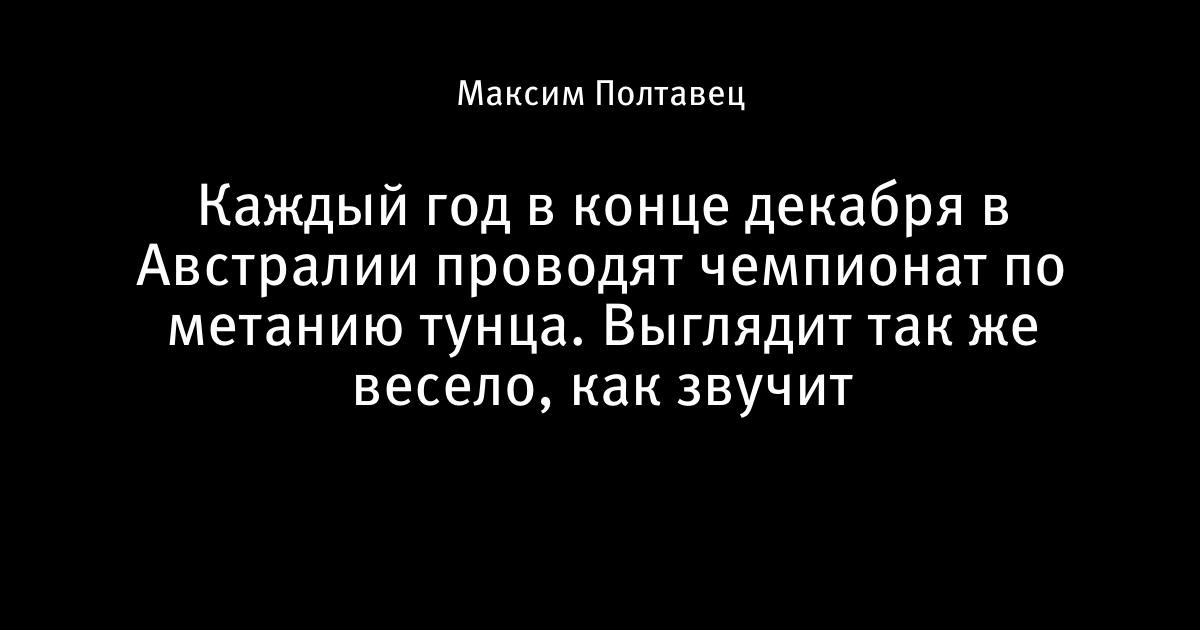 Каждый год в конце декабря в Австралии проводят чемпионат по метанию тунца. Выглядит так же весело, как звучит