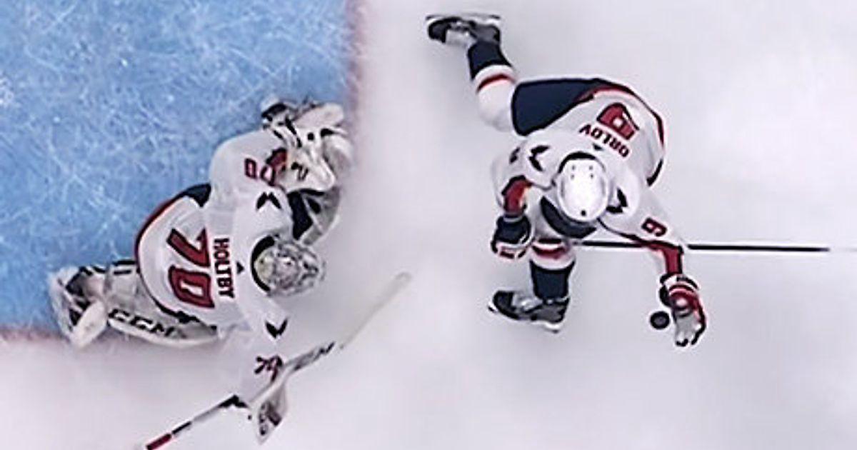 Опасный момент у ворот «Вашингтона» в первом периоде гостевого матча с «Чикаго» завершился совсем неожиданно – Дмитрий Орлов рукой выбивал подлетевшую шайбу с пятачка, но вместо этого перебросил своего голкипера и отправил ее под перекладину.