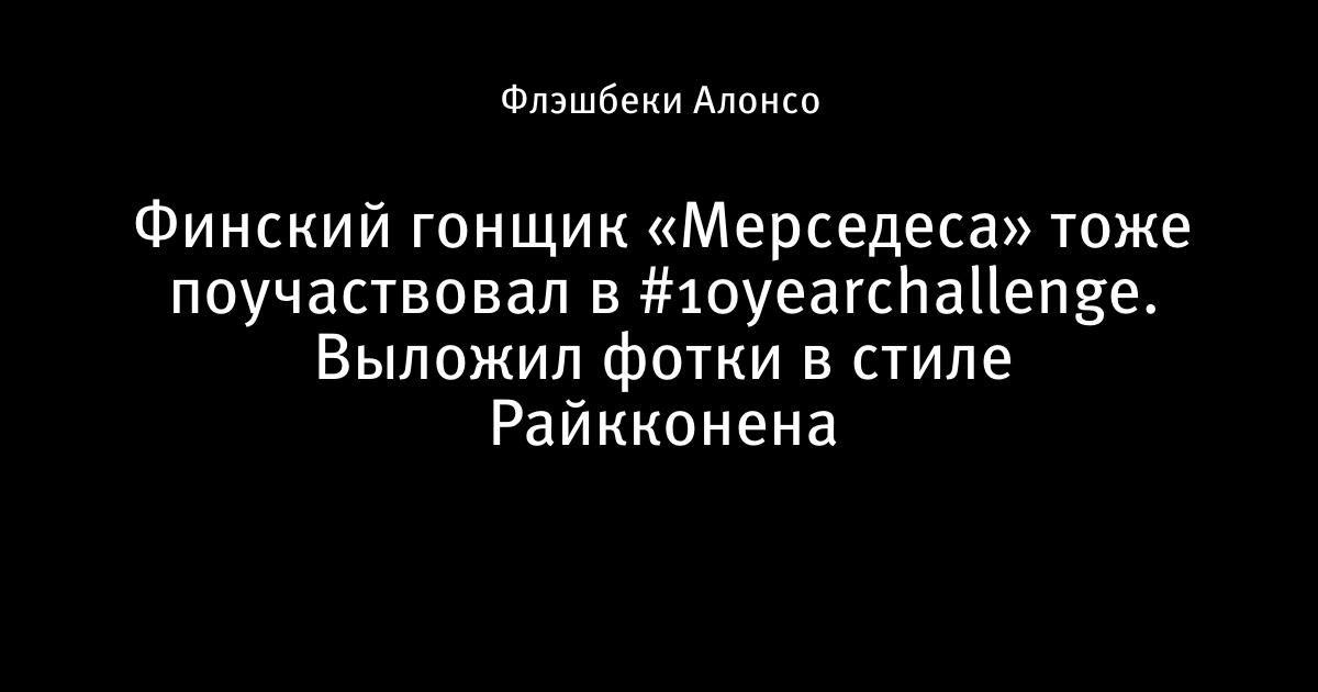 Финский гонщик «Мерседеса» тоже поучаствовал в #10yearchallenge. Выложил фотки в стиле Райкконена